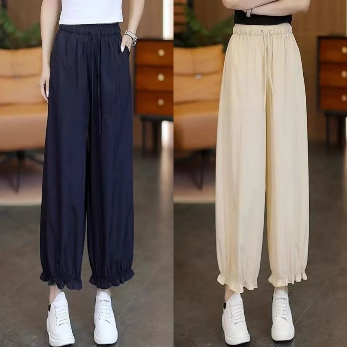 利落裤型搭配精致花边裤脚 弱化休闲感的随意 多了几分温柔 胖瘦都可以驾驭